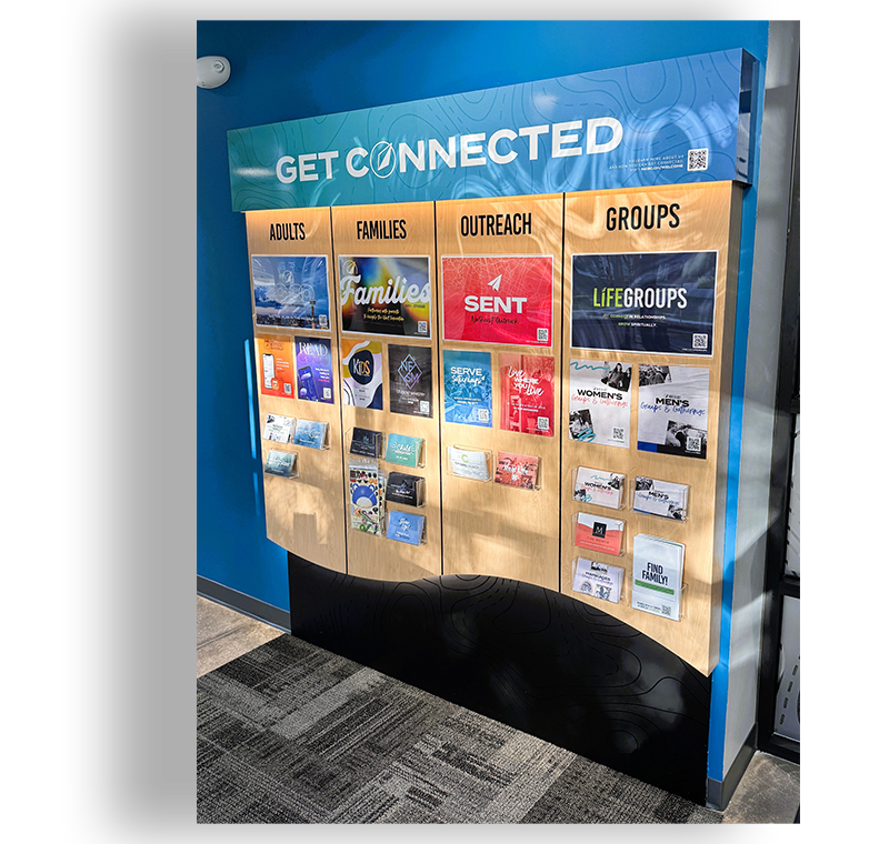 WE CAN DESIGN INTERIOR FIXTURES LIKE KIOSKS, RECEPTION DESKS, AND MARKETING WALLS.